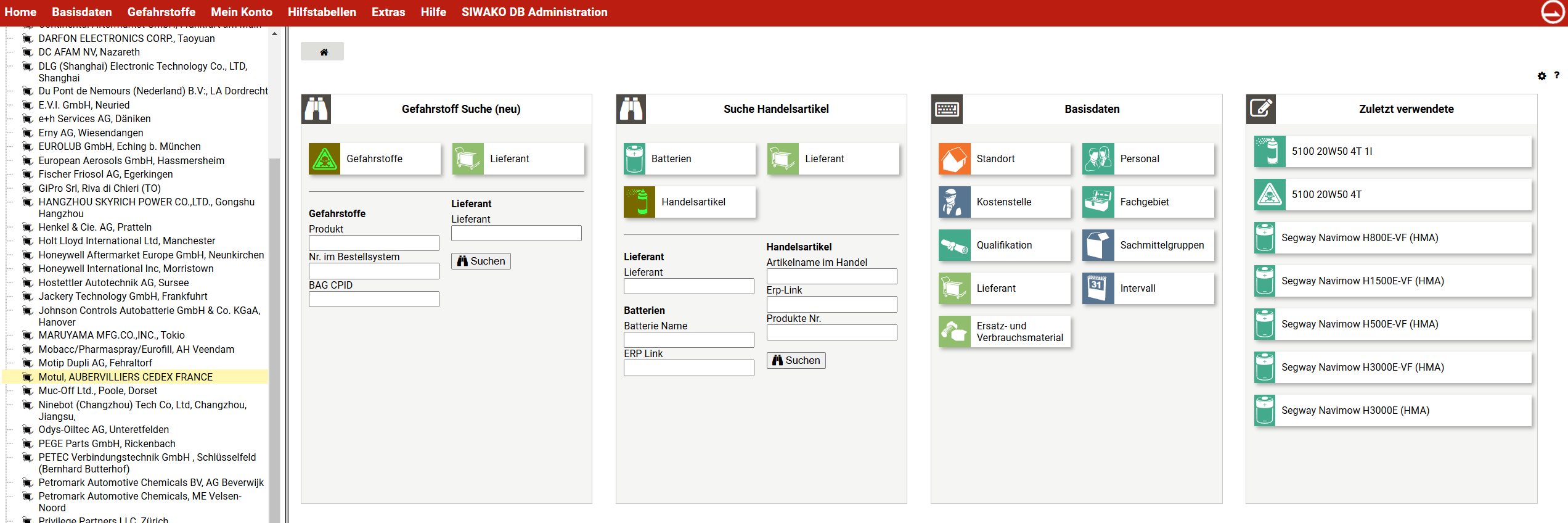 Sie können jederzeit direkt auf die entsprechenden Artikel im ADR (Europäisches Übereinkommen über den grenzüberschreitenden Transport von Gefahrgut) verweisen, dank des direkten Zugriffs auf die elektronische Version. Sie erfassen das Gefahrgut im SIWAKO, klassieren es nach ADR / RID, hinterlegen Sicherheitsdatenblätter, generieren Lagerlisten auf Knopfdruck und haben online-Zugriff auf Stoffdaten und Vorschriften von UN-Nummern.
